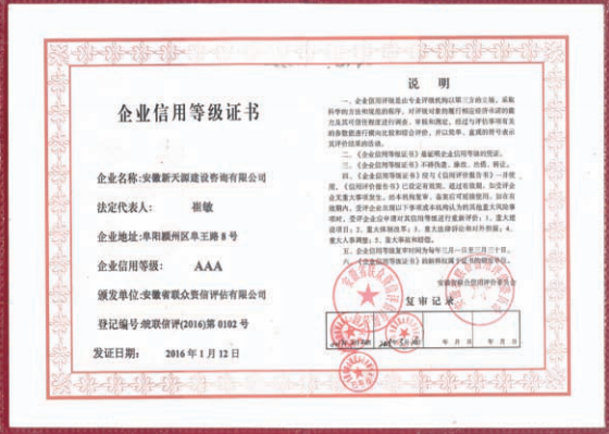 安徽新天源建設咨詢有限公司是一家全過程項目管理咨詢機構,重點開展PPP項目咨詢、BIM項目咨詢、招標代理、工程造價、工程監理、工程咨詢等業務。 公司成立于2003年4月10日,為股份制企業,現注冊資金5000萬元,辦公面積2200多平方米,法人代表崔敏。在成立同年,公司取得了國家發展改革委員會頒發工程咨詢資格證書,并成為安徽省工程咨詢協會會員單位。隨著近年來的不斷發展壯大,公司相繼取得了招標代理資質證書(工程招標代理資質資格證書、政府采購代理資格證書、水利工程招標代理資格證書、中央投資項目招標代理資質證書)。 2008年11月取得工程造價資質證書并成為阜陽市審計局審計協審定點單位; 2012年3月取得安徽省發改委固定資產節能評估資質證書; 2012年3月取得安徽省國土資源廳測繪資質證書; 2012年7月獲得安徽省經濟和信息化委員會第一批工業投資項目節能評估機構備案; 2012年9月取得水利工程監理資質證書; 2014年1月取得工程監理資質證書;現工程招標代理及工程造價已取得甲級資質,并開展了環境影響評價、工程測量、房地產評估等業務。